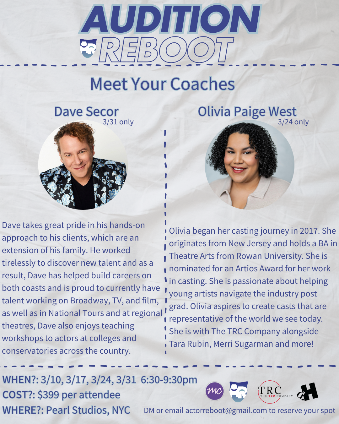 Whether it is audition coaching, dance training, refining your resume, building smart rep, or developing your personal brand, we are here to guide you every step of the way.